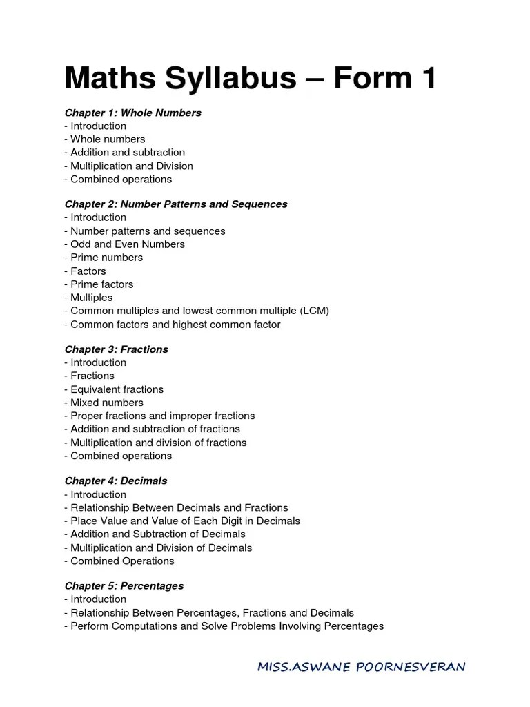 Based on the malaysian pt3 form 1 mathematics syllabus.